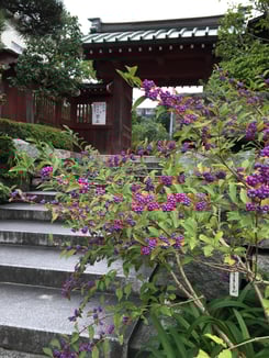 すっかり秋ですね。 おんめさま(大巧寺)の山門がムラサキシキブで彩られていました。