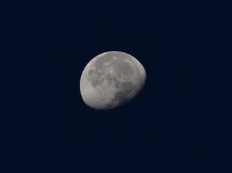 早朝の月です。 西の空に ぷっかり ふっくら 輝いていたので 切手を貼った郵便物を持って ポストまで散歩。 のつもりが…