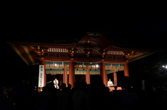 8月8日、月明かりの下、舞殿にて 雲龍さんとKNOBさんによる献奏がありました。