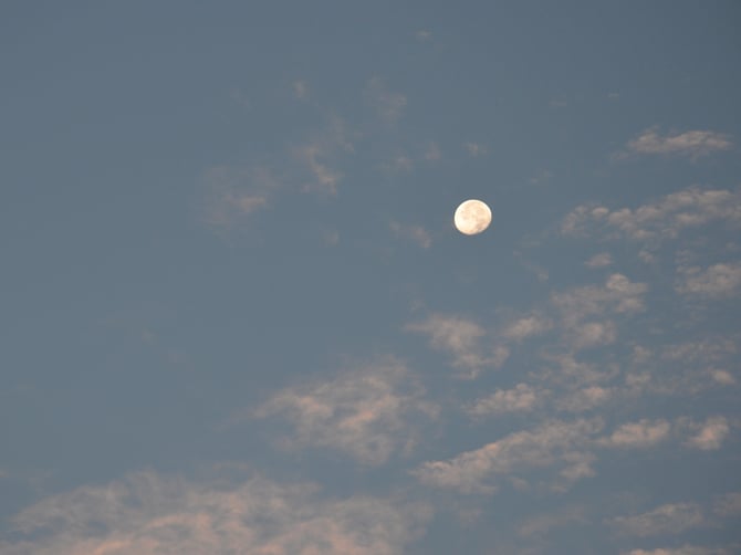 おわりに、朝焼けに ほんのり茜色に染まる雲と月齢17の月を。