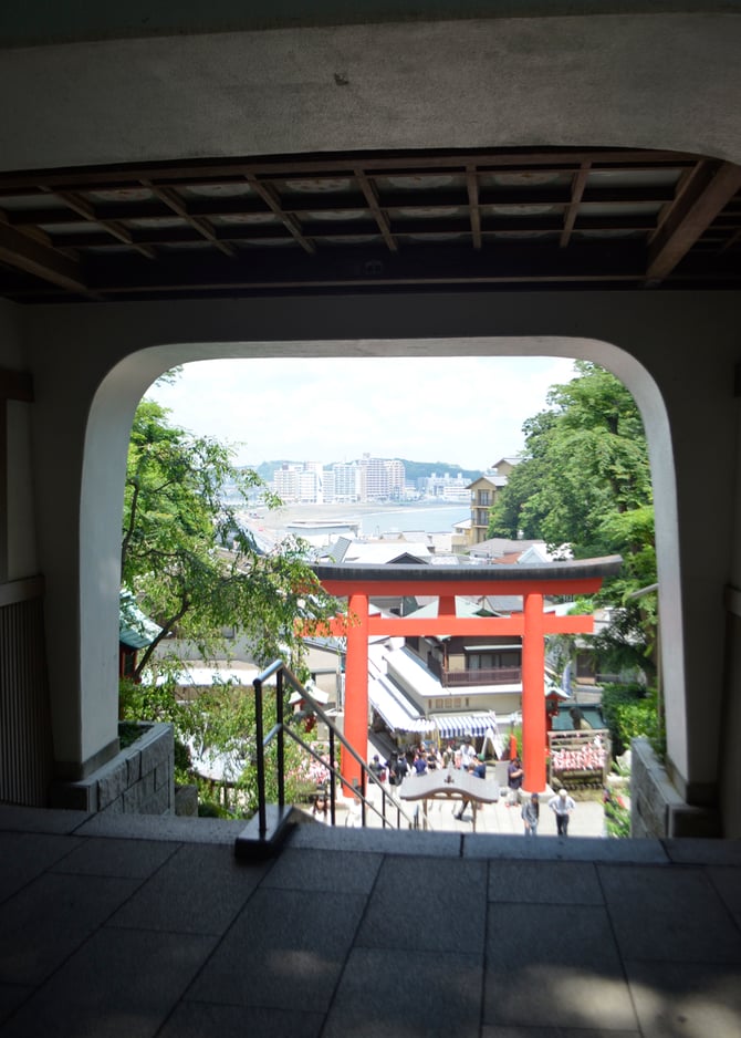 江島神社の瑞心門から望む鎌倉方面です。