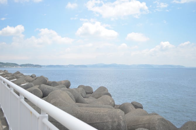 鎌倉の砂浜海岸を見慣れていると、このようなテトラポッドのある風景も新鮮です。