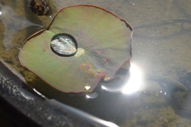 今年もまたハスの葉が生え始めたので、しばらく水玉の世界を楽しめそうです。