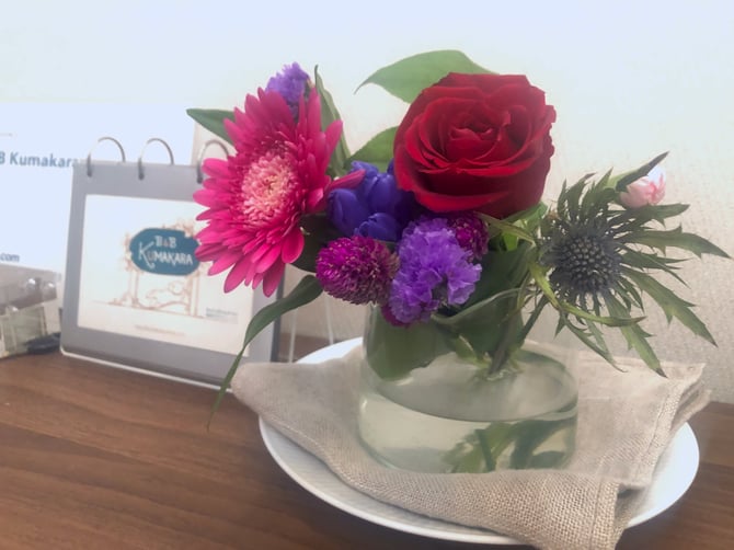 夏休みのご家族旅行でリピートしてくださっているお客様から、お花束のプレゼントをいただきました。