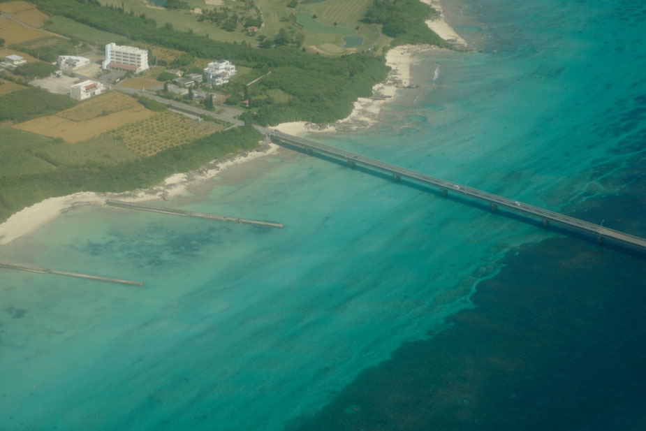 宮古島の海は、空から望むと、いつもと違う美しさ。
