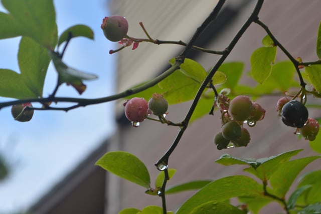 ご近所のブルーベリーから滴る雫も、ぴとぴと優しい音楽を響かせていました。