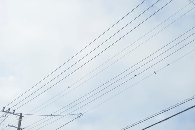 電線で羽を休めるツバメたちが、音符のよう。