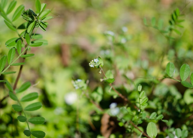 写真のキュウリグサ(タビラコ)の花は2-3mmと、非常に小さく健気な野の花。