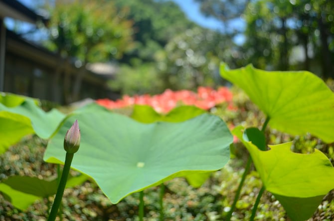 写真は、庭のハスのつぼみです。