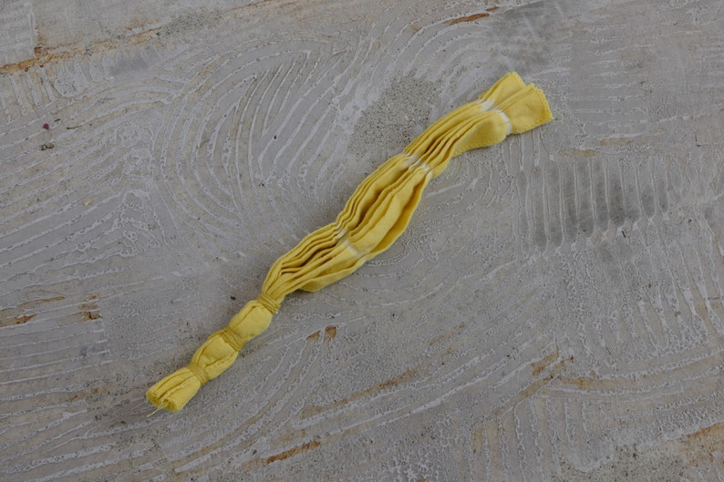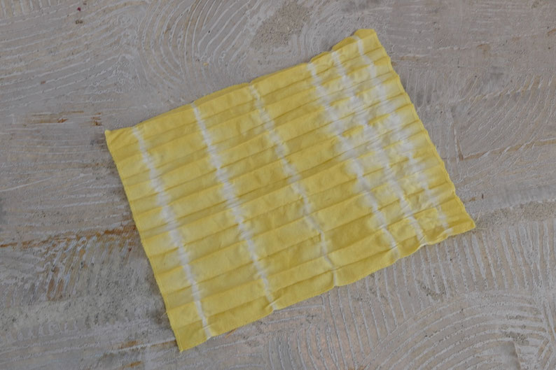 この後、こちらの布の半分を藍染めして緑色にしてみました。