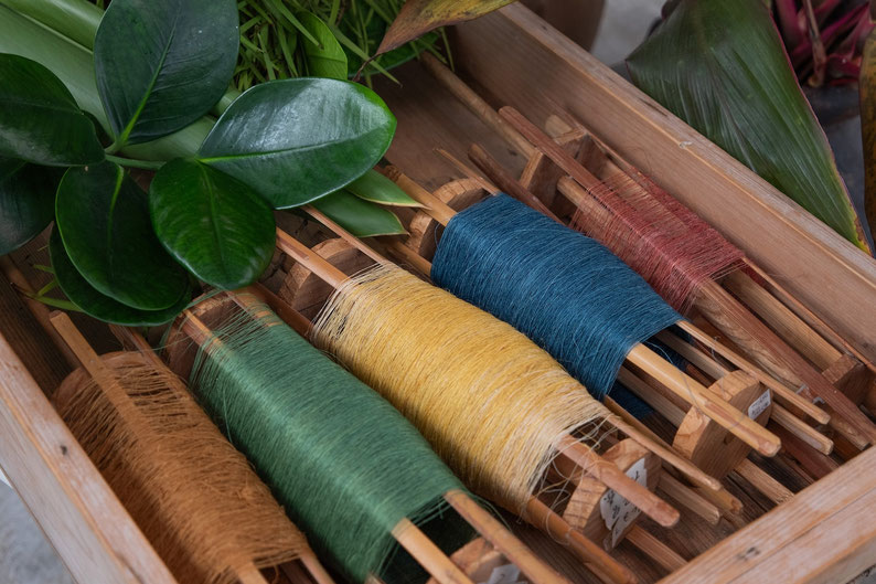 色とりどりの糸は、美恵子さんが草木染めされたもので、ご自身が主宰する工房「想思樹」から持ってきてくださいました。